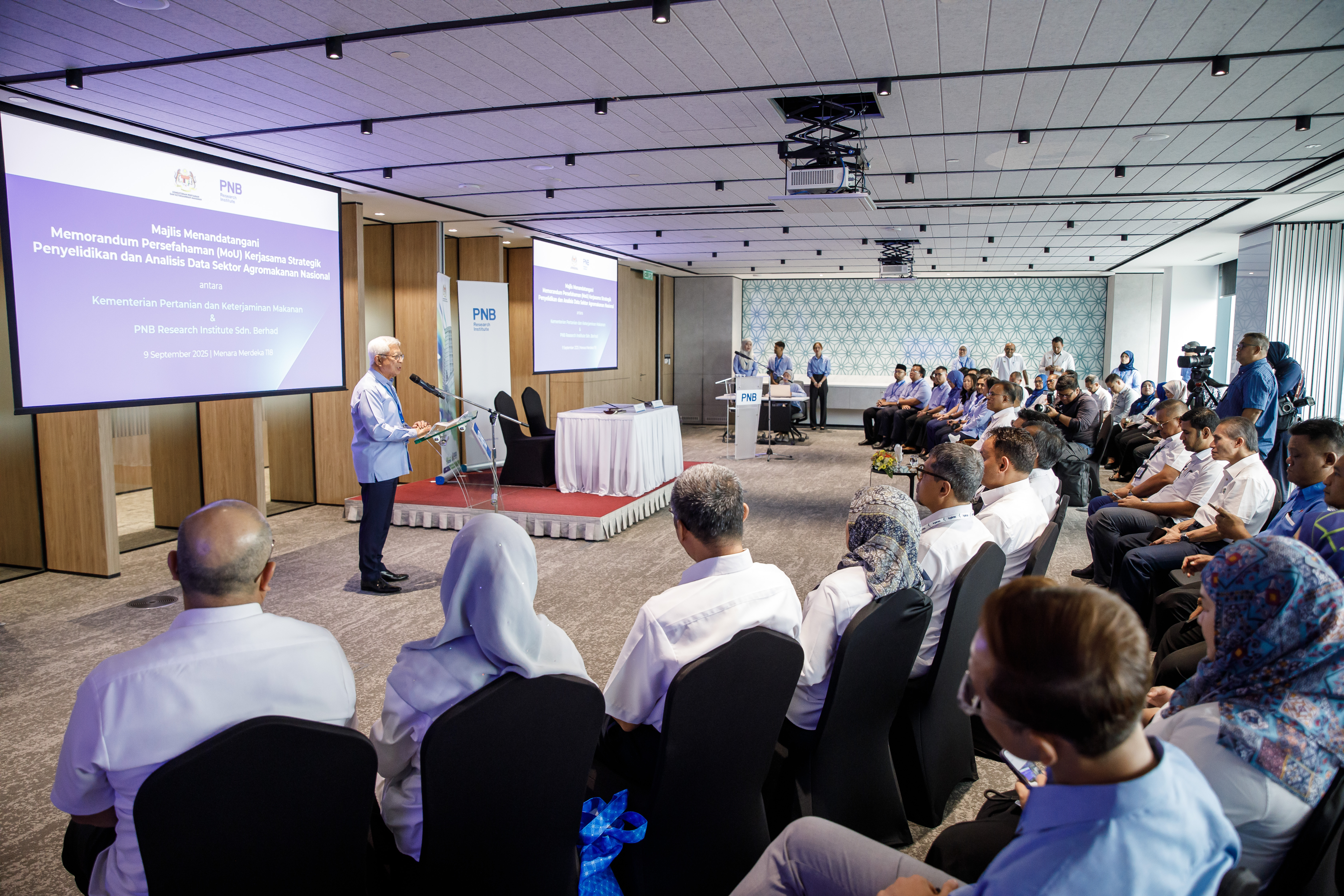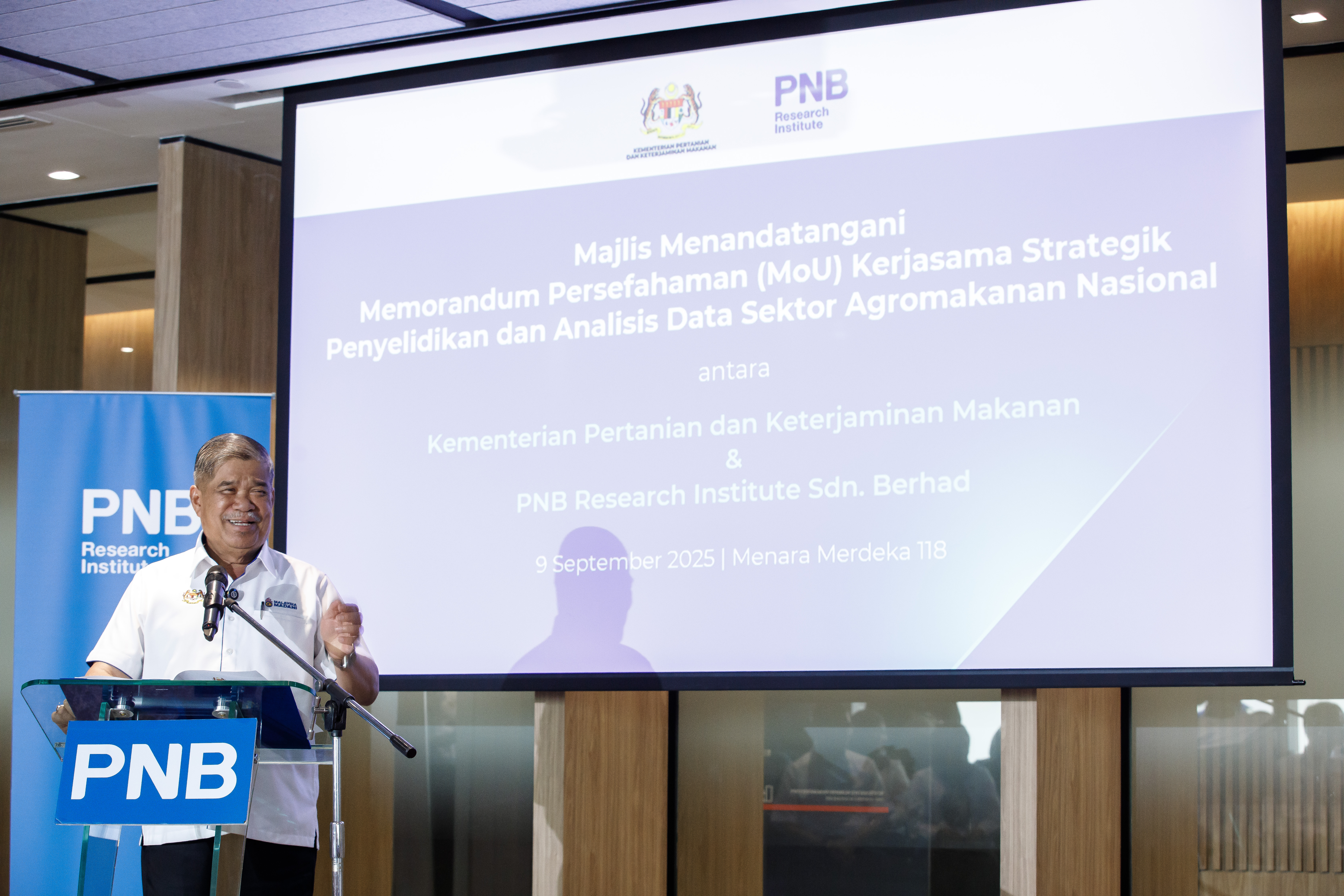 The MoU was signed by KPKM Secretary-General, Datuk Seri Isham Ishak, while PNBRI was represented by its Chief Executive Officer, Dr. Sarena Che Omar. The ceremony was witnessed by the Minister of Agriculture and Food Security, Datuk Seri Haji Mohamad Sabu, and PNB Group Chairman, Raja Tan Sri Dato’ Seri Arshad Raja Tun Uda, at Menara Merdeka 118, Kuala Lumpur.